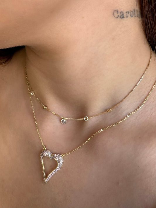 Allure - 18K Gold Plated Stainless Steel Hearts Necklace