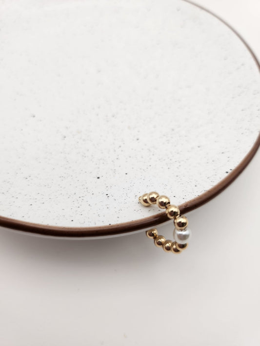 Pearl & Gold Beads Ear Cuff - 18k Gold Filled