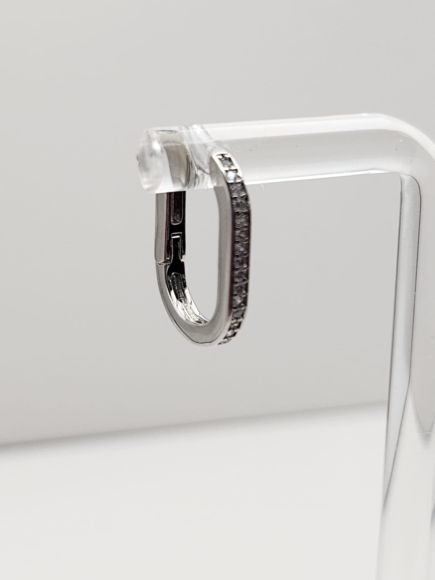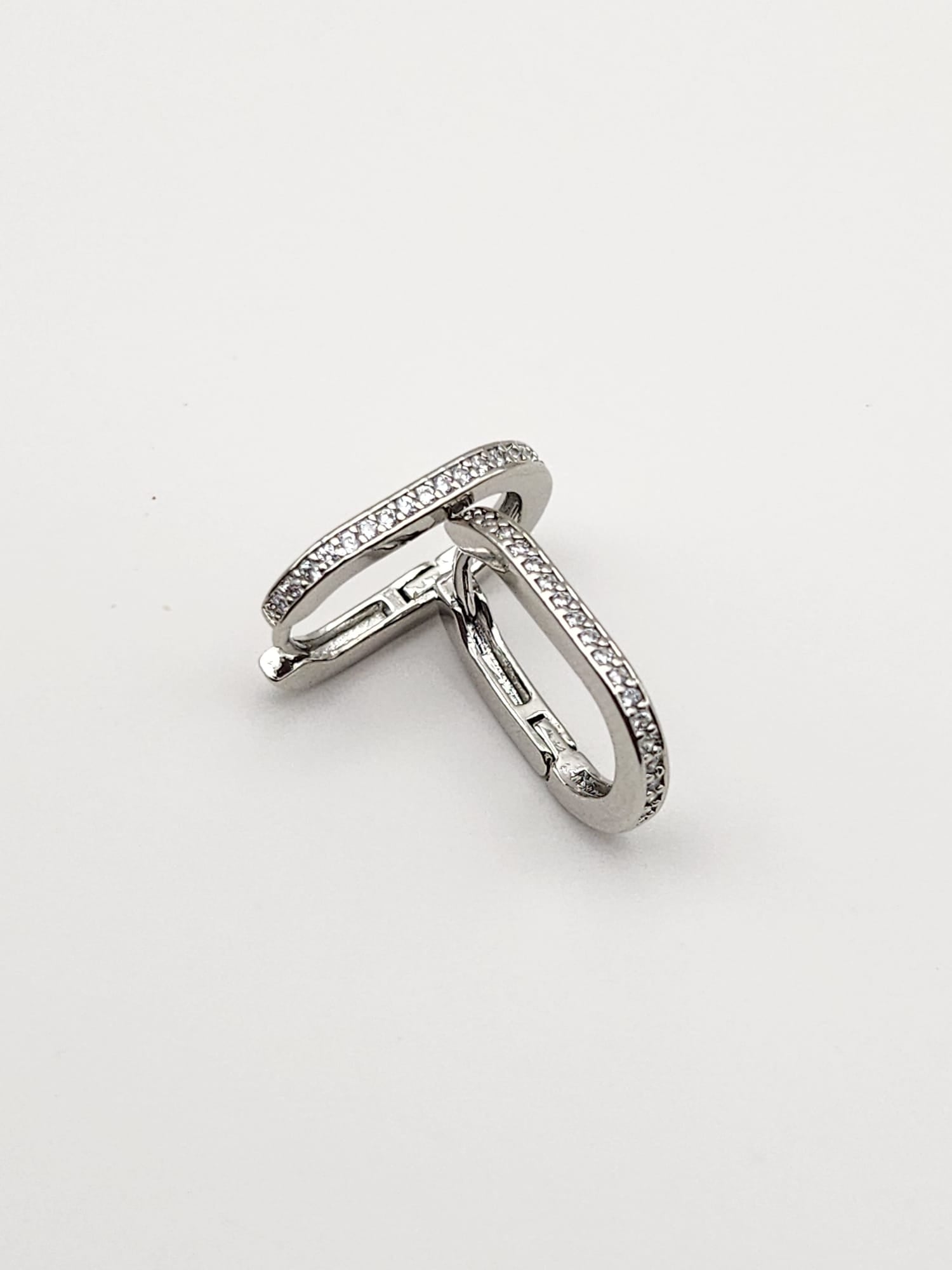 Rectangle CZ Hoops - Small - Rhodium Filled